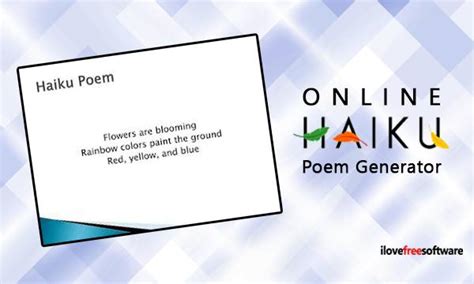 Poem Generator, Create a Haiku in Seconds, A Haiku is a short Japanese poem used to evoke images. Our Haiku generator lets you choose a few words then it automatically counts the ?